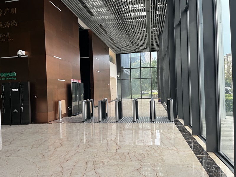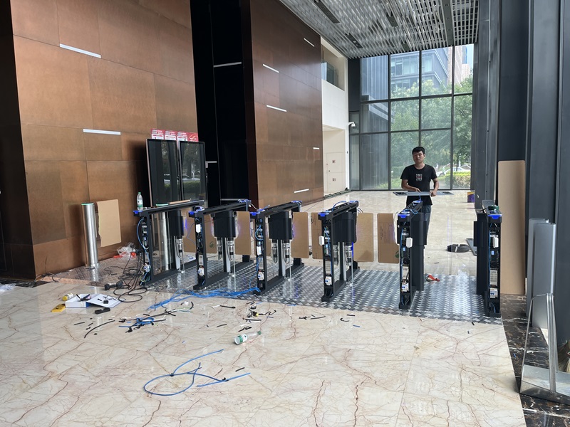 該大廈已經(jīng)建好多年為更好的管控出入人員,現(xiàn)在需要在大堂安裝速通門及人臉識別系統(tǒng)。該速通門采用鐵軍品牌的,該品牌被評為是中出網(wǎng)“通道閘十大品牌”稱號。此次在該單位安裝了6個人行通道速通門和一個拉貨圓柱擺閘。